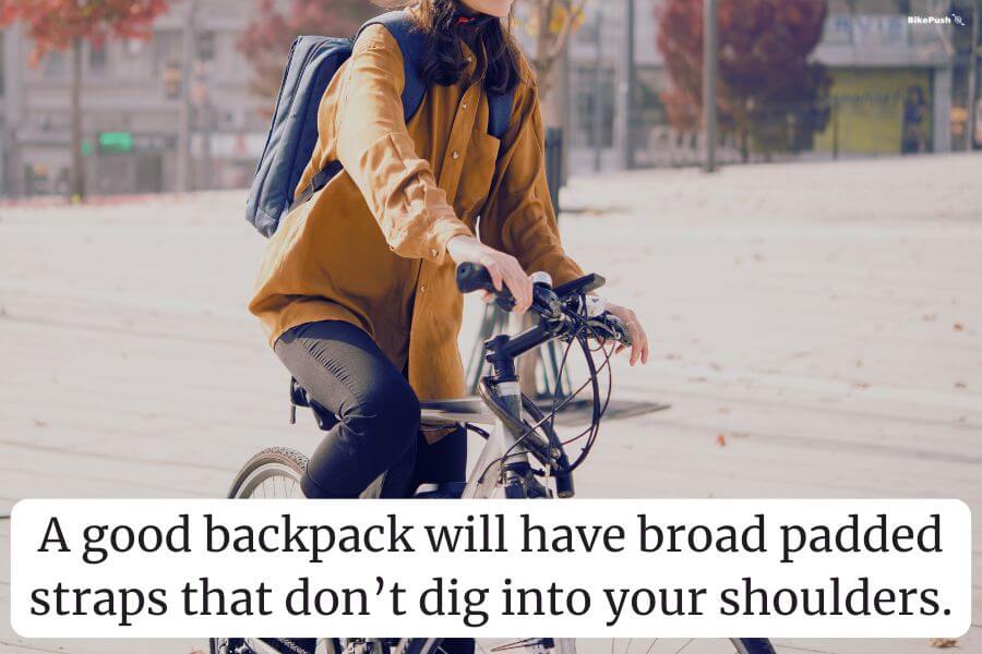 A good backpack will have broad padded straps that donโt dig into your shoulders.