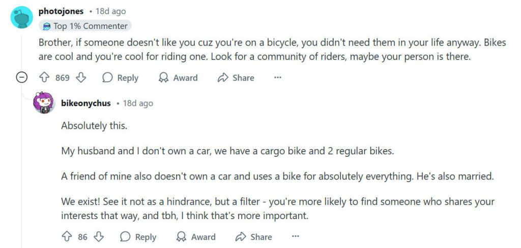 So we took a look over on a recent Reddit thread in r/bikecommuting sparked an interesting discussion about dating while being car-free, and the responses might surprise you.